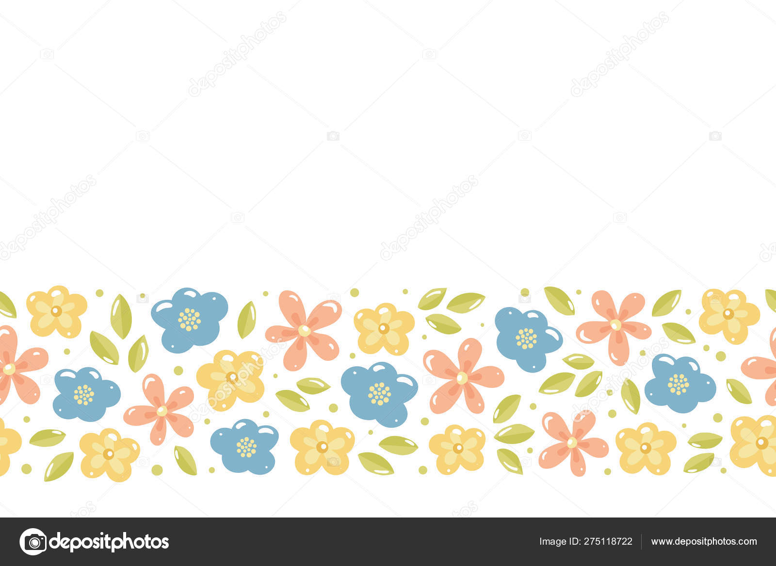 Vector Floral Seamless Horizontal Border Cartoon Colorful Icon