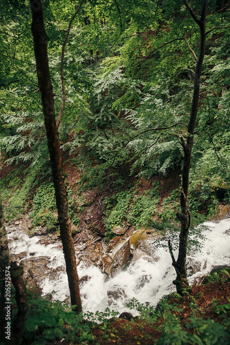 Beautiful Waterfall On River In Sunny Woods River Flowing In